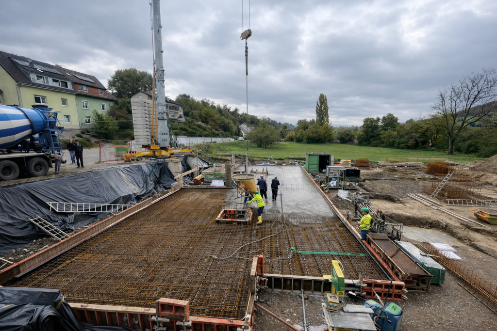 Der fachgerechte Betoneinbau ist die Grundlage für dauerhaft hochwertige Betonflächen. Wir übernehmen den Betoneinbau präzise, termingerecht und abgestimmt auf die jeweilige Konstruktion – von Bodenplatten bis zur funktionalen Betonflächen im Industrie-, Hoch- und Wohnbau.